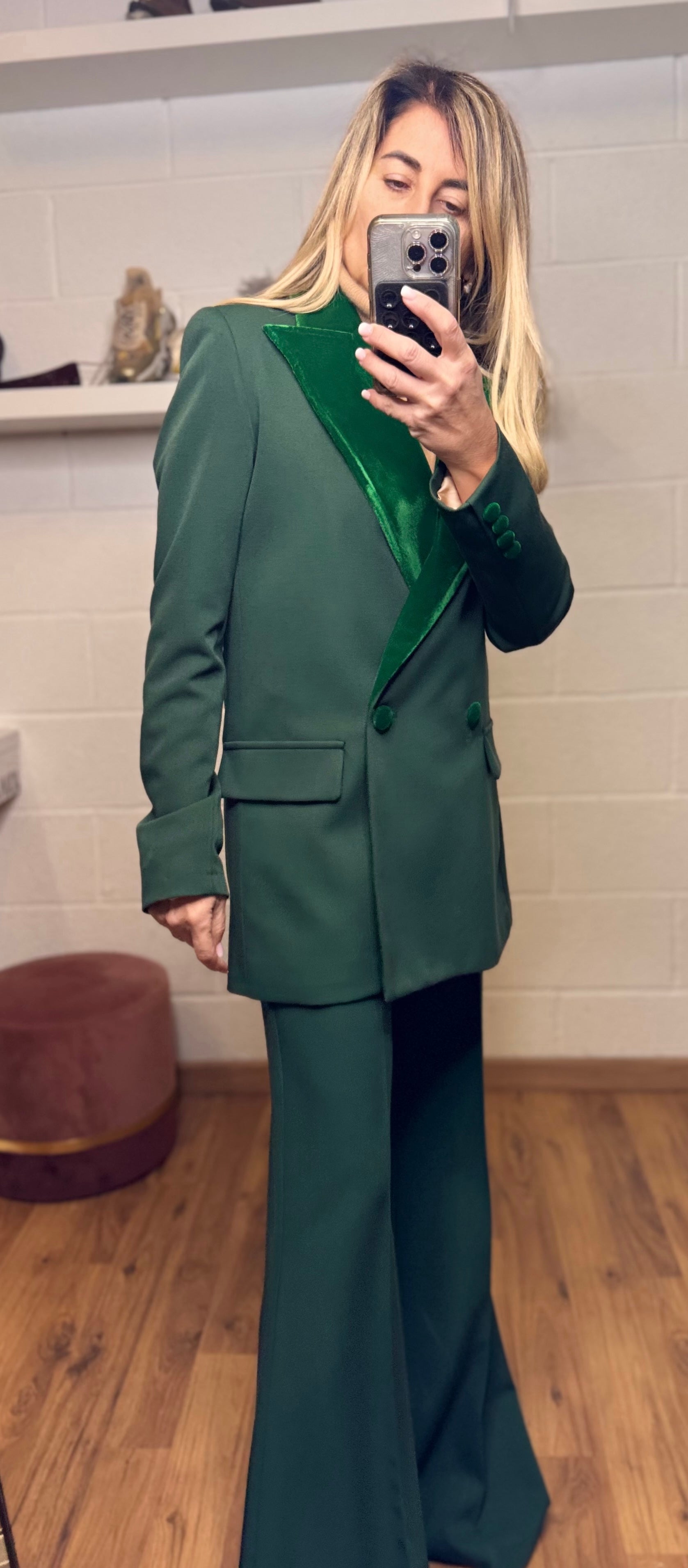 Blazer e Panta verde.