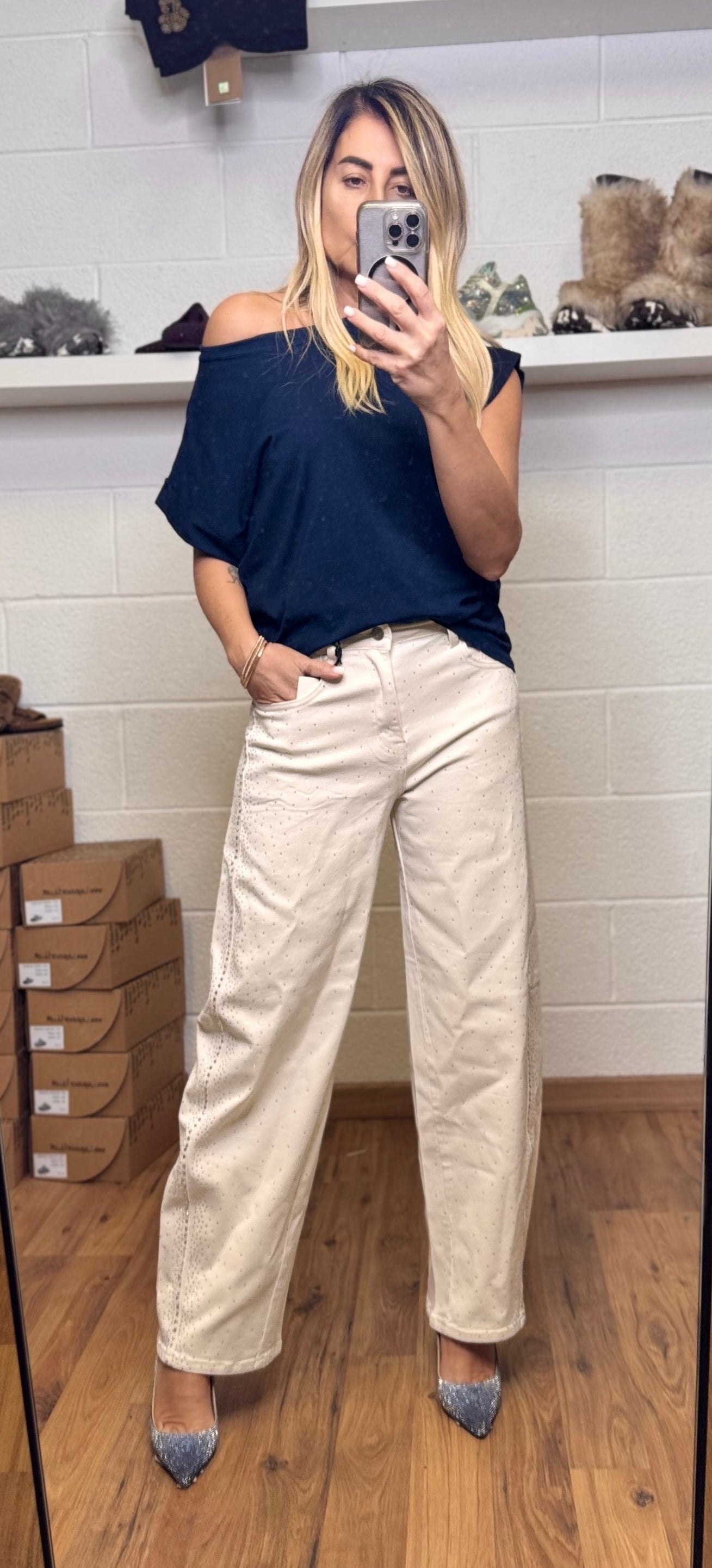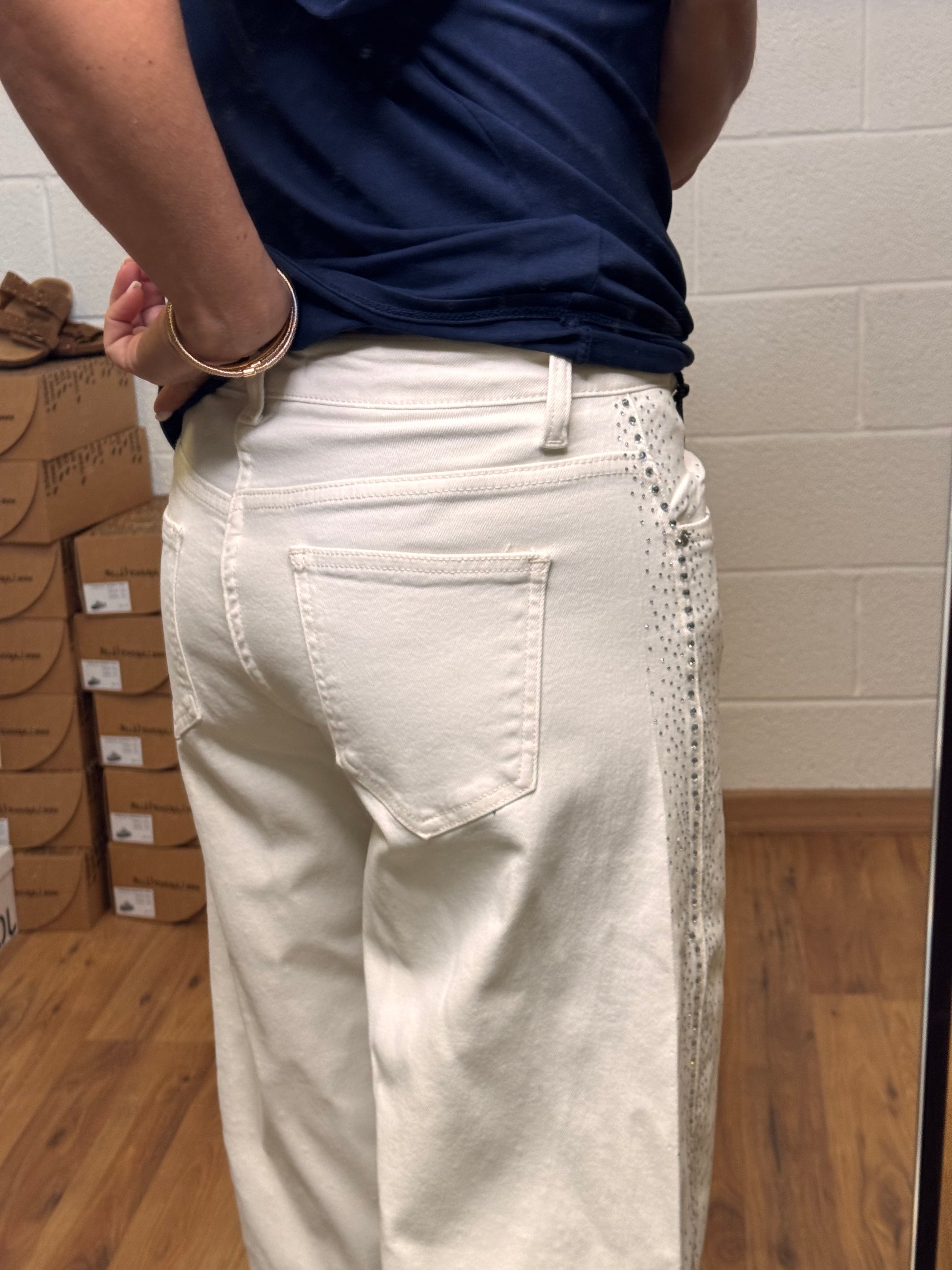 Le Streghe. Denim bianco con Swarovski