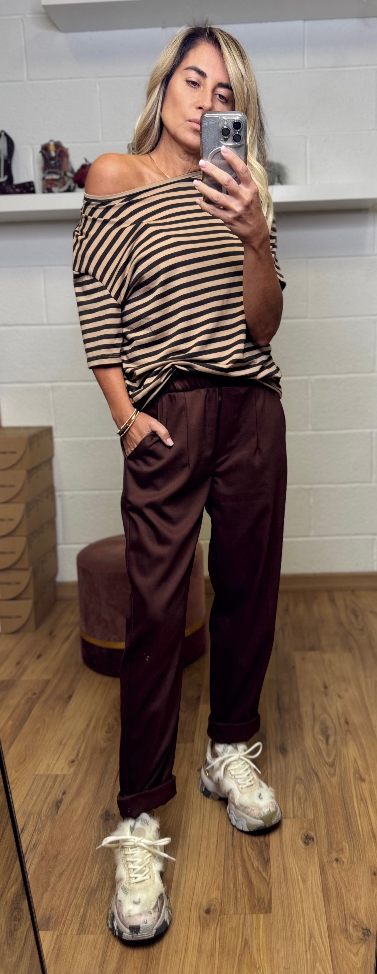 Le Streghe. T-shirt camel e cioccolato