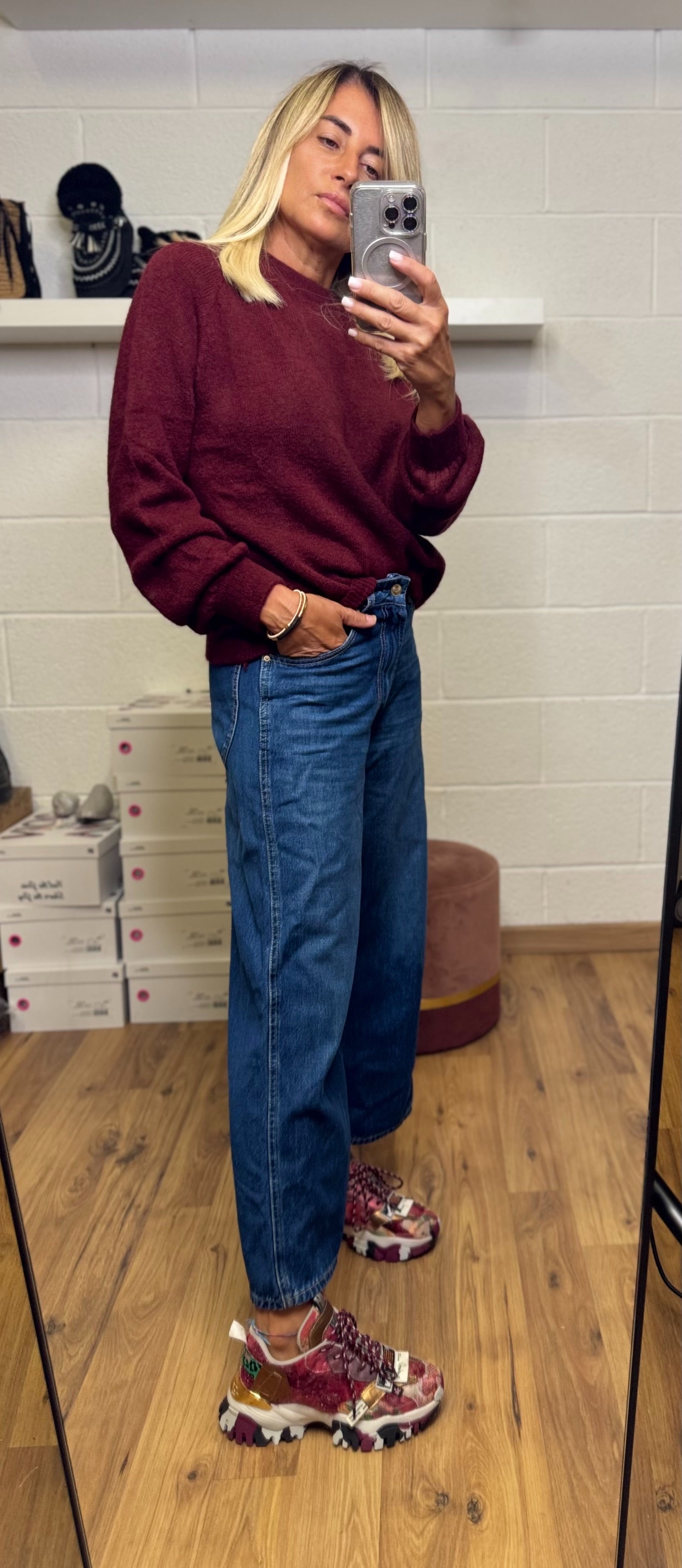 Emma Red. Pull burgundi