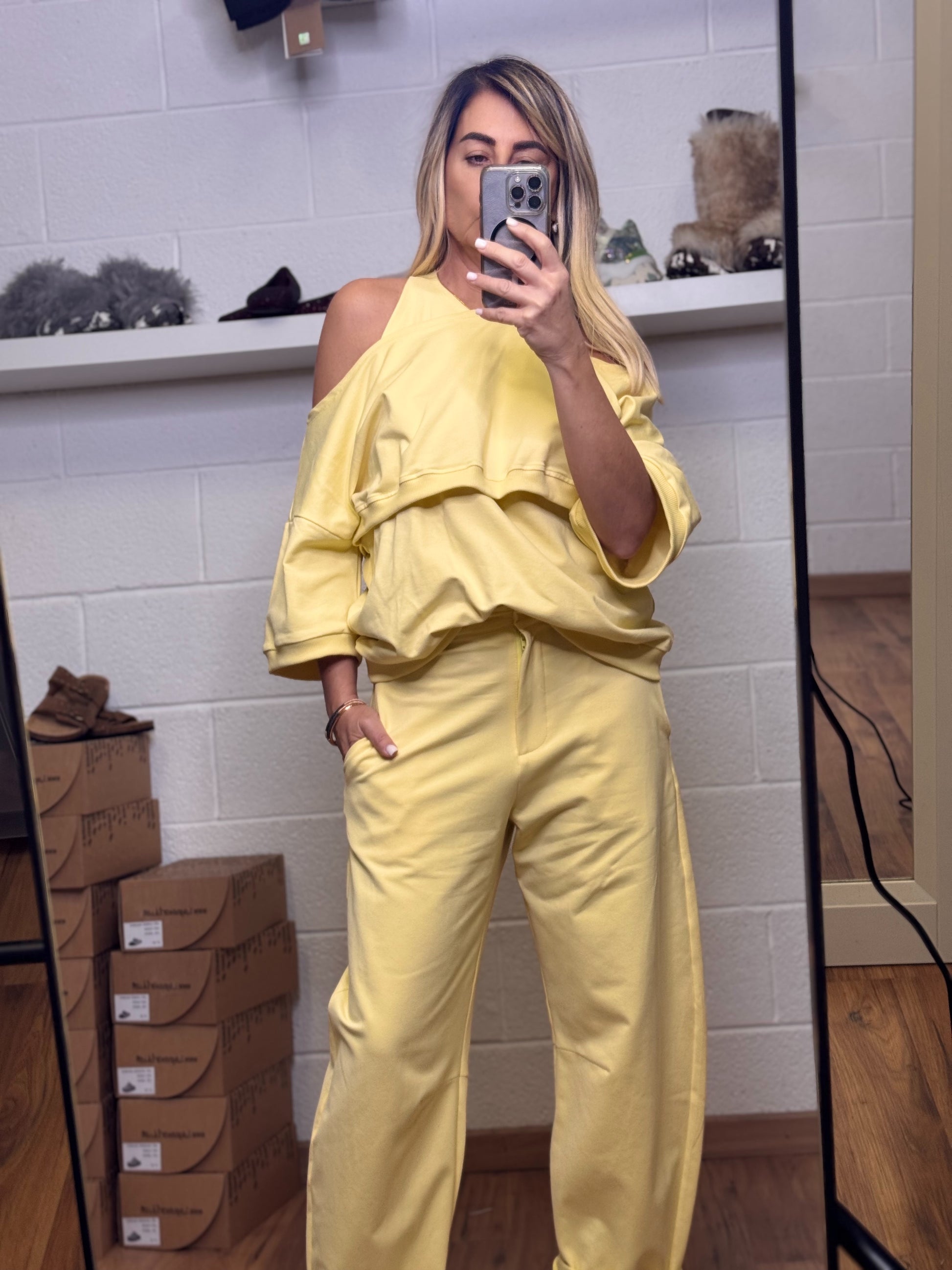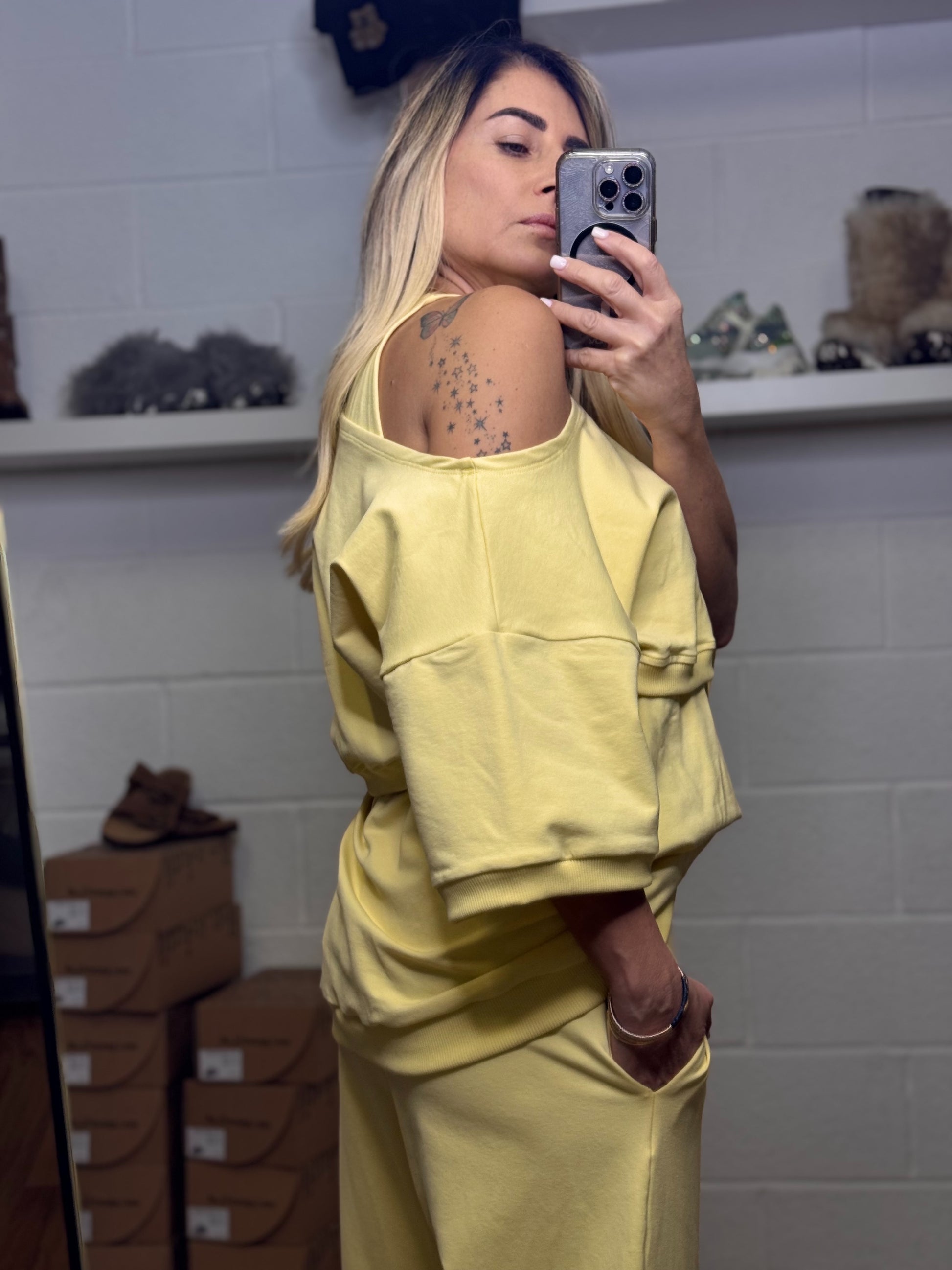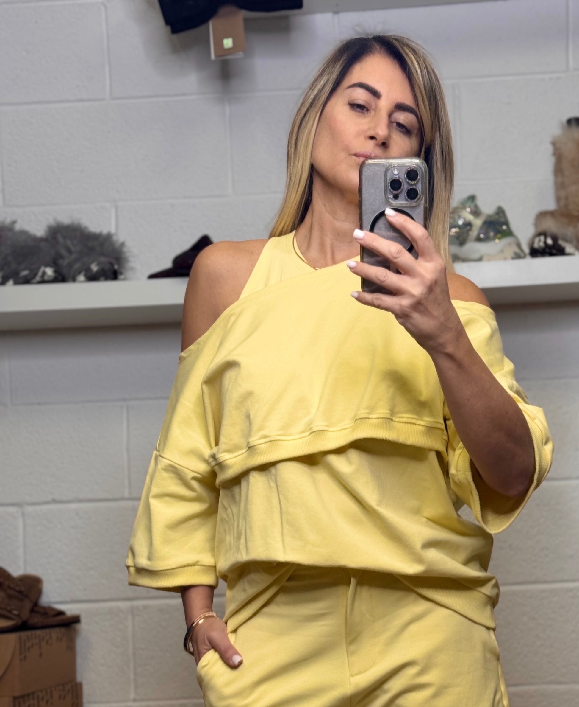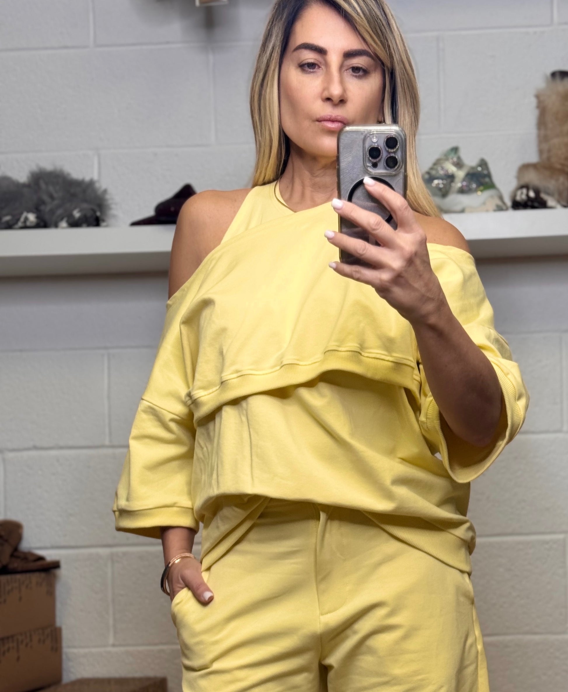 Felpa dal design contemporaneo e femminile, caratterizzata da un originale taglio off-shoulder che lascia scoperte le spalle creando un look sensuale ma sport-chic. Il particolare effetto layered sul davanti dona movimento e rende il capo ricercato e distintivo.
